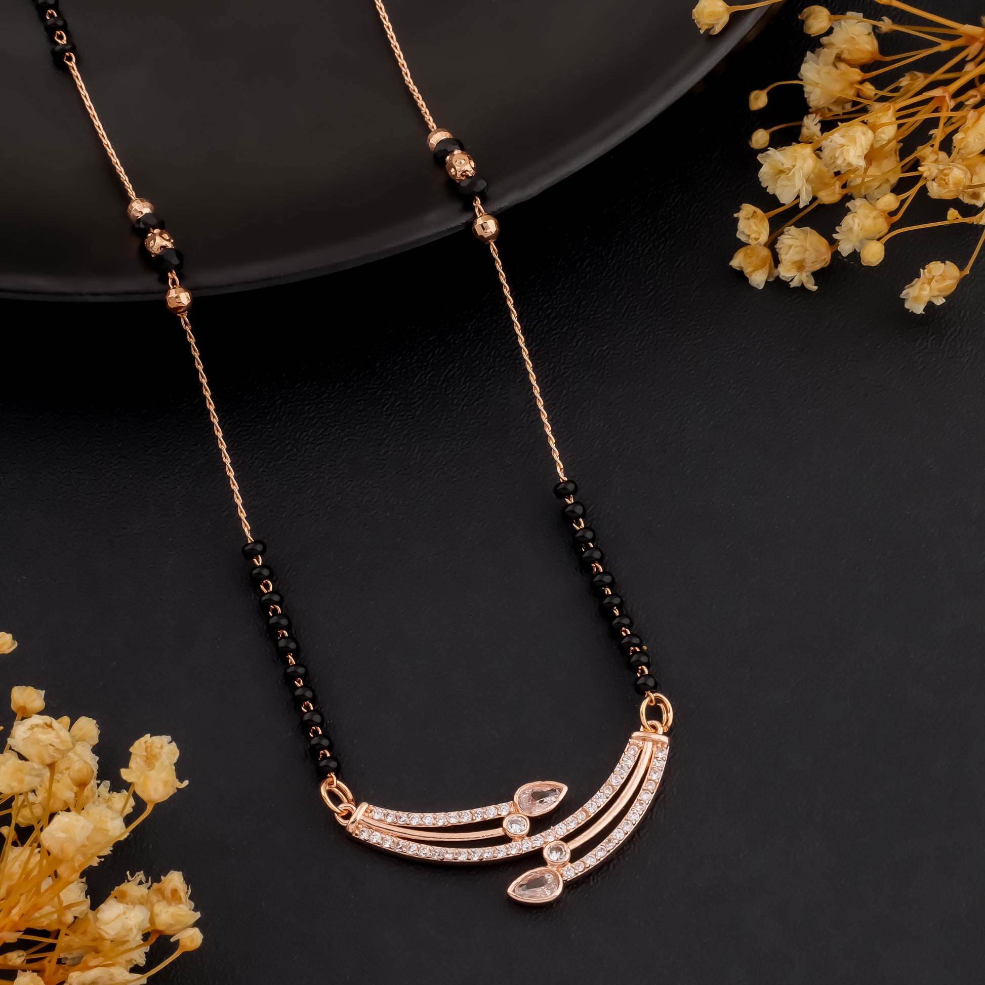 Design: Traditionally made of black beads strung on a gold chain. The black beads are believed to ward off the evil eye and protect the marriage.